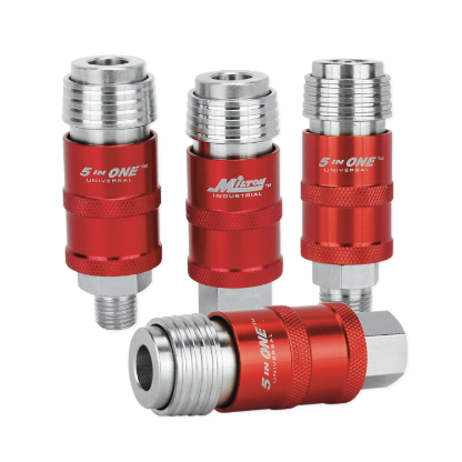 Milton®’s 5 In ONE™ Universal Industrial Safety Exhaust Couplers are designed to safely bleed off air pressure before releasing the connector.